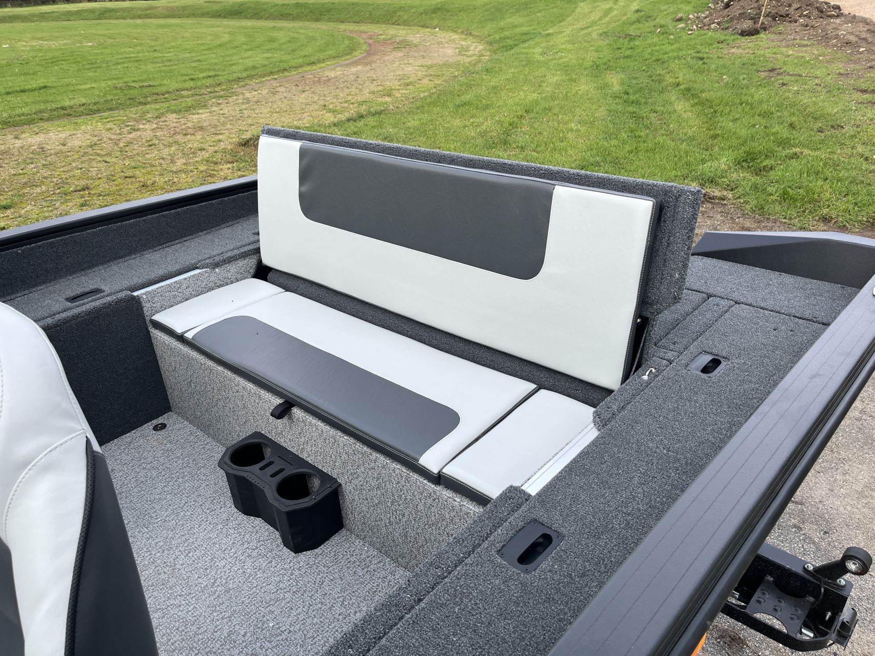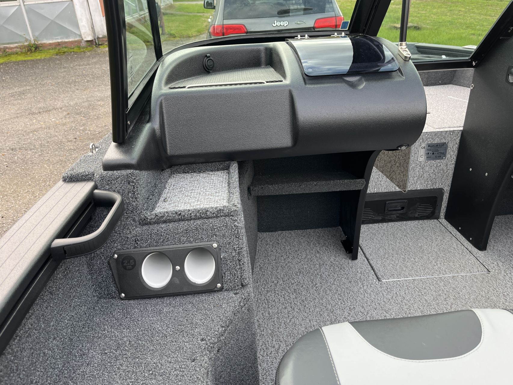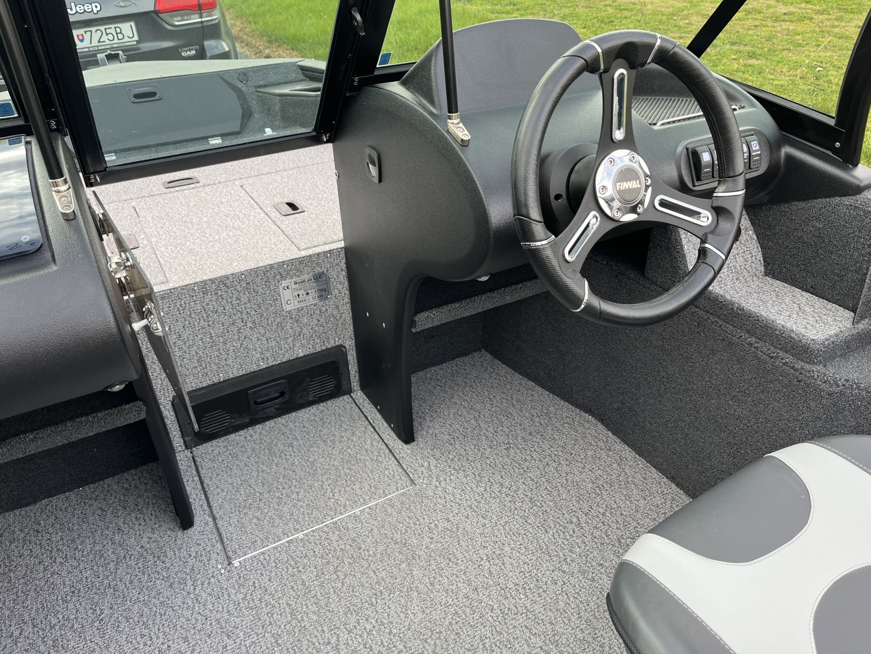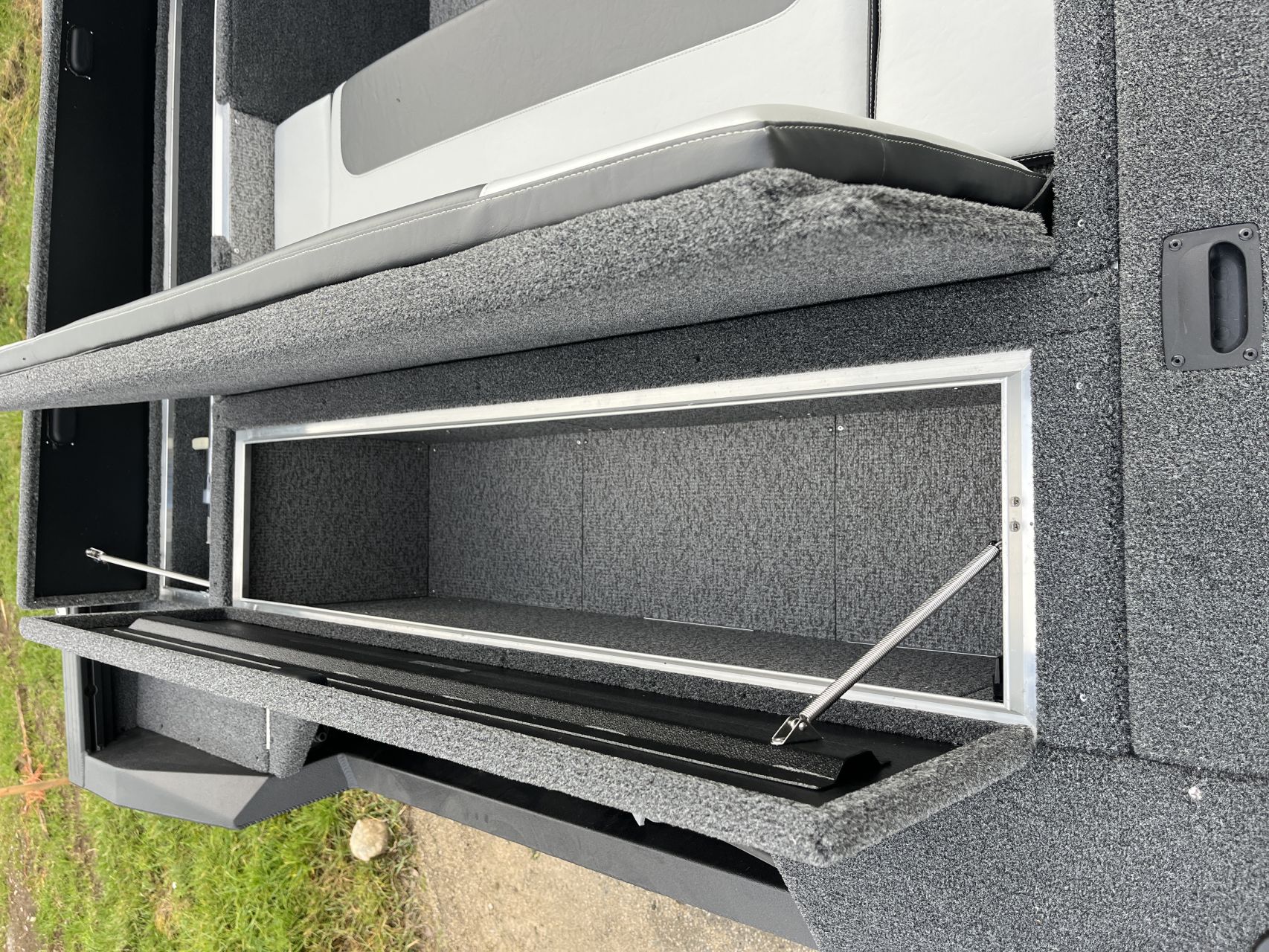 - Vnútorné dosky a zadná paluba pokryté námorným kobercom