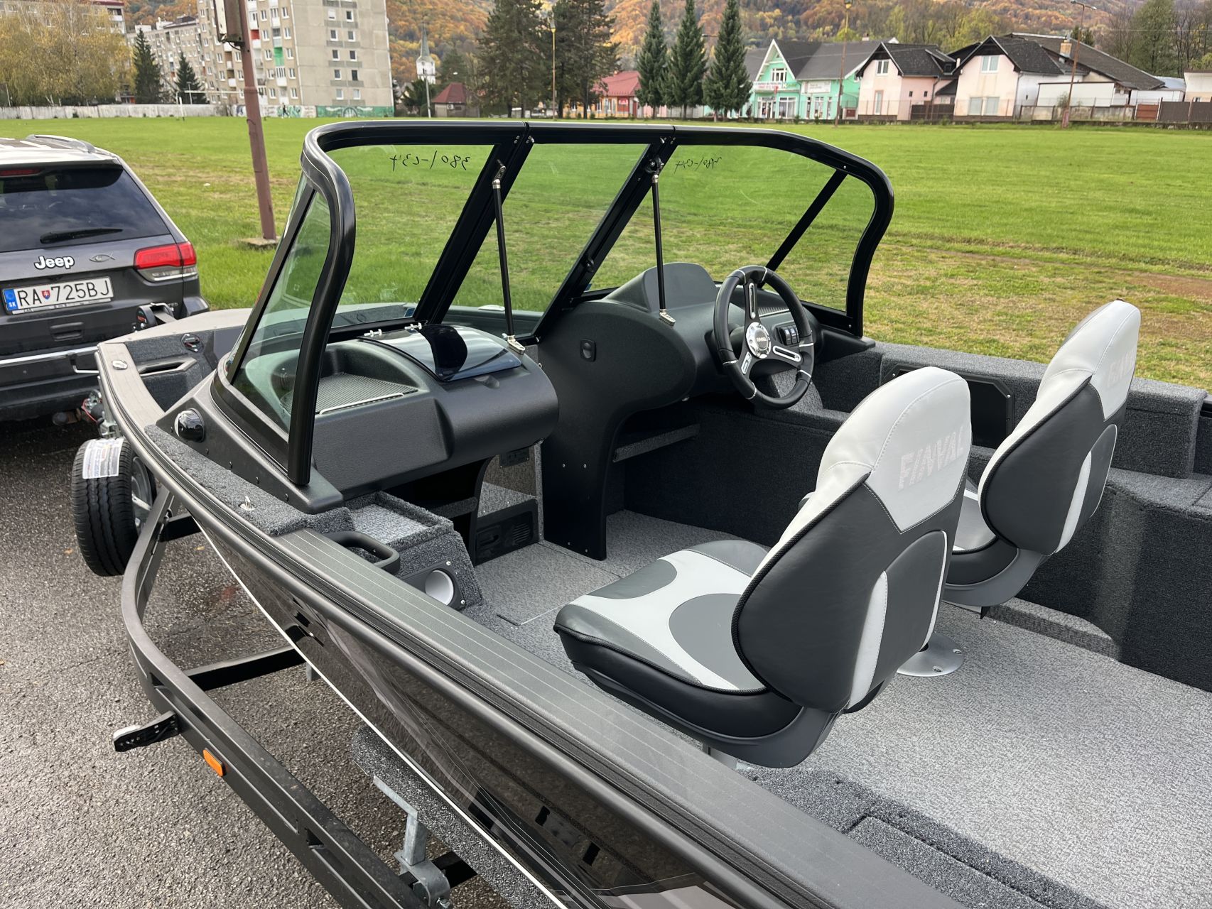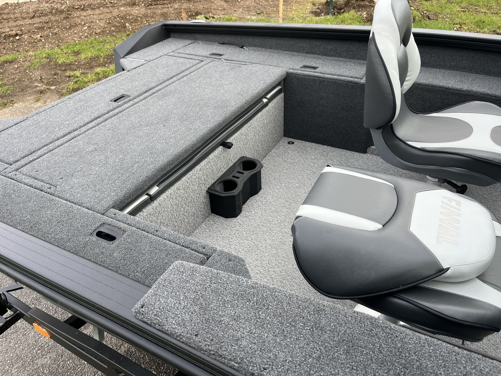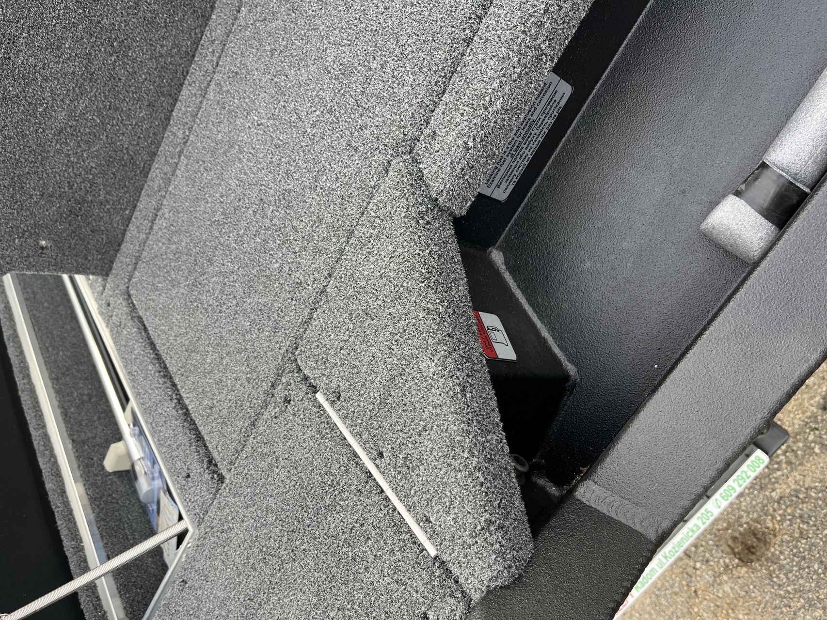 - Vnútorné dosky a zadná paluba pokryté námorným kobercom