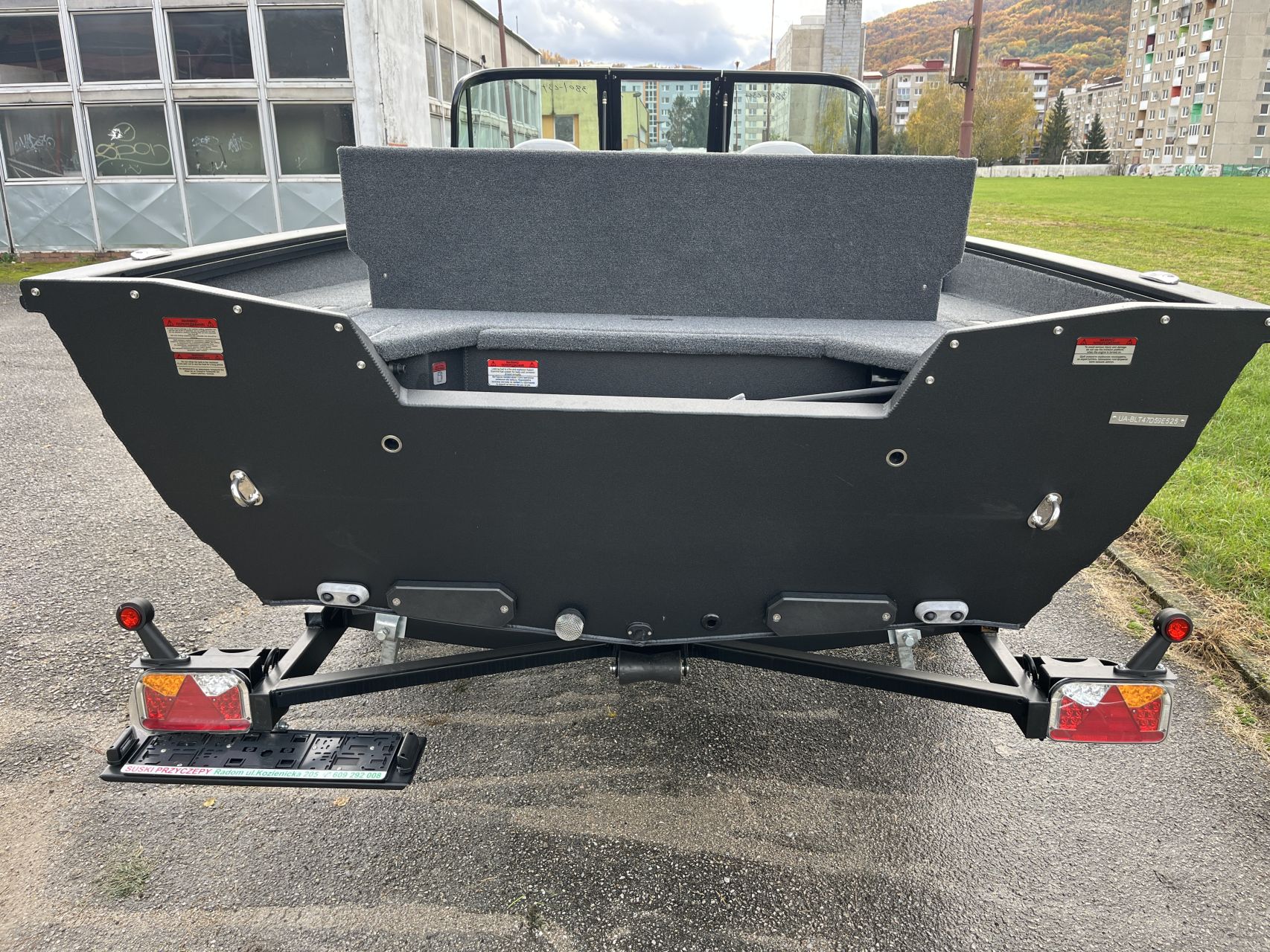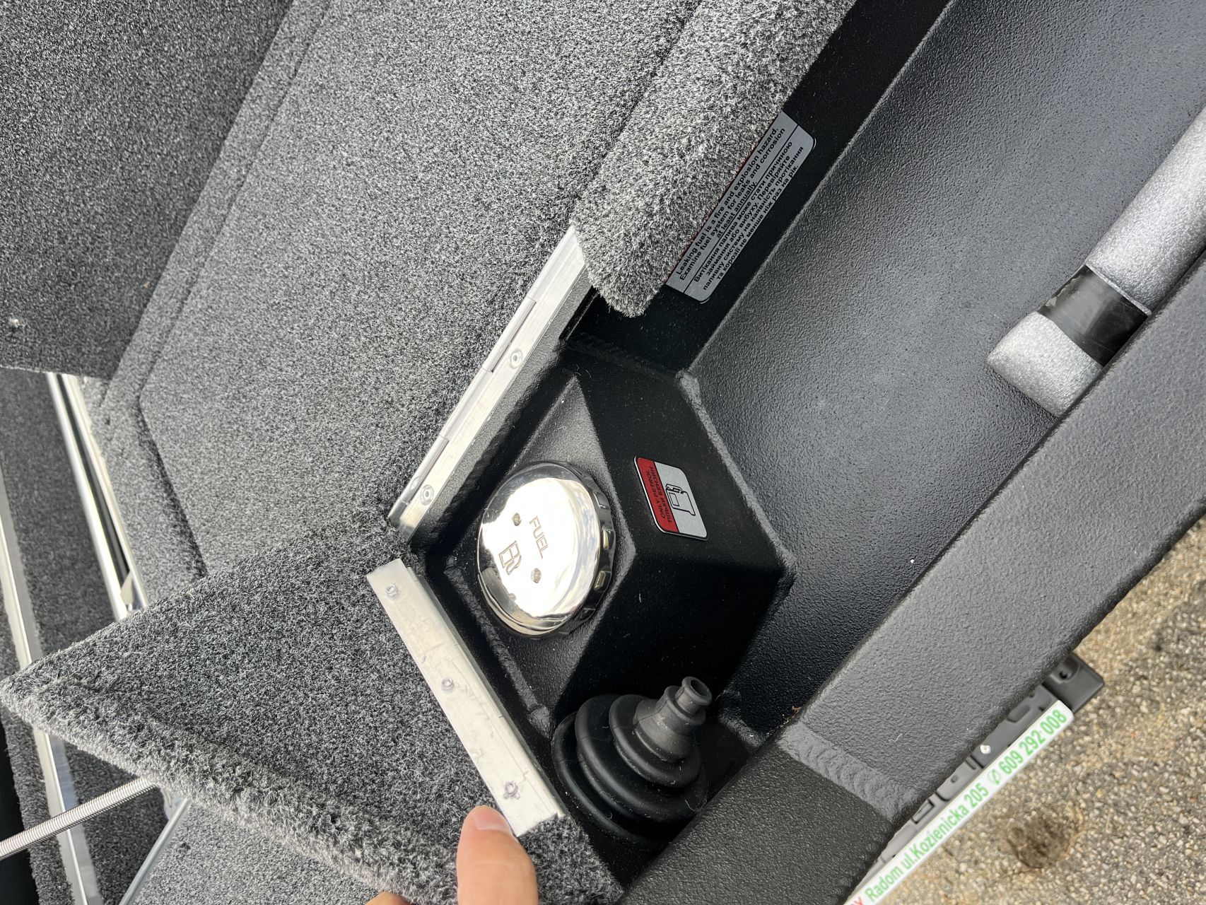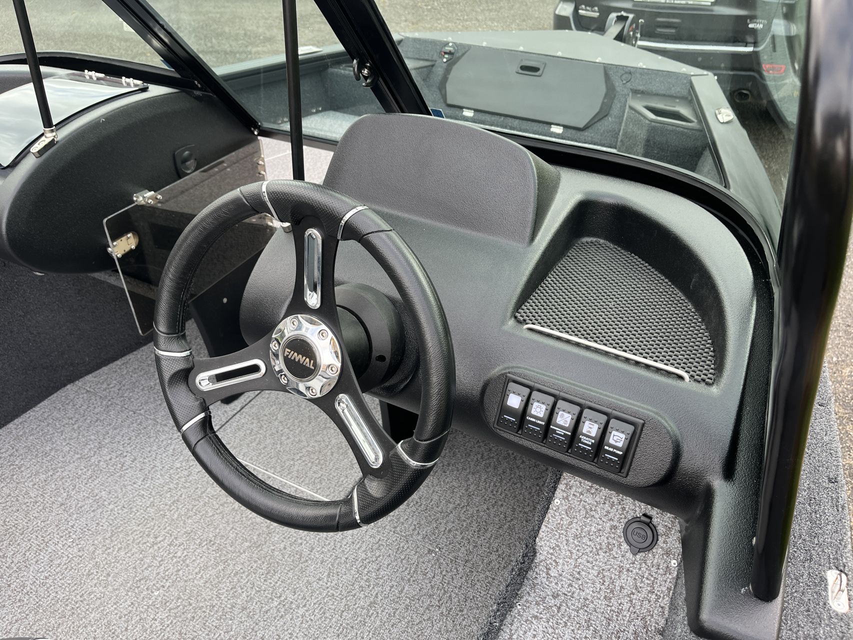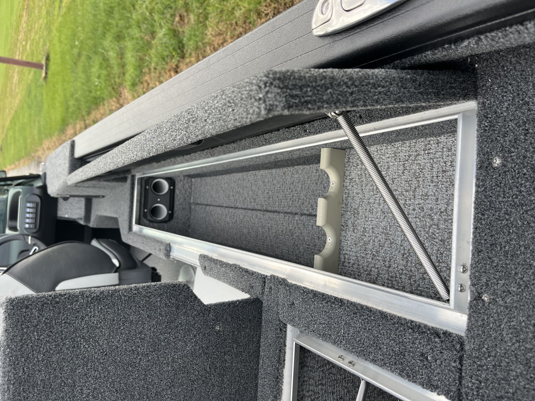 - Vnútorné dosky a zadná paluba pokryté námorným kobercom