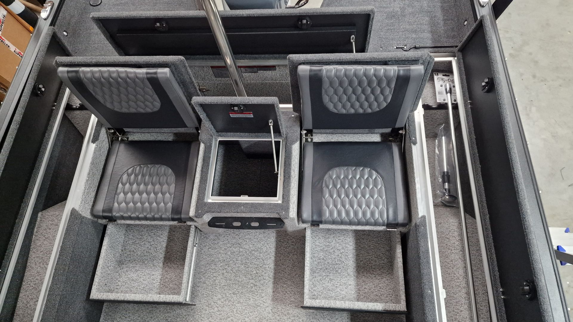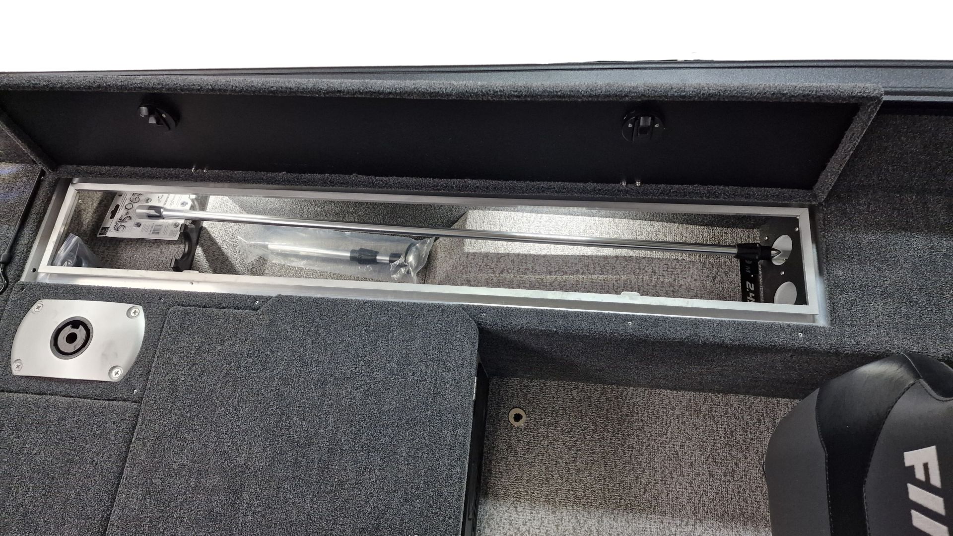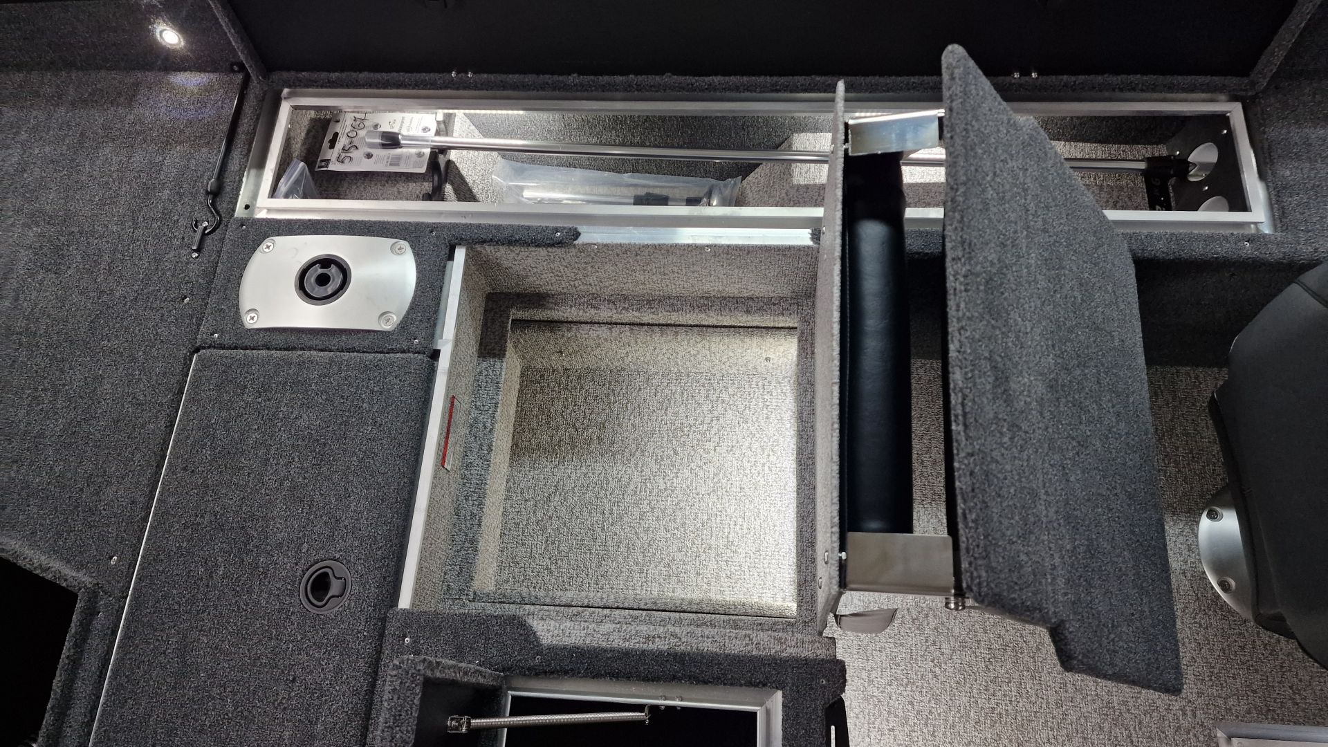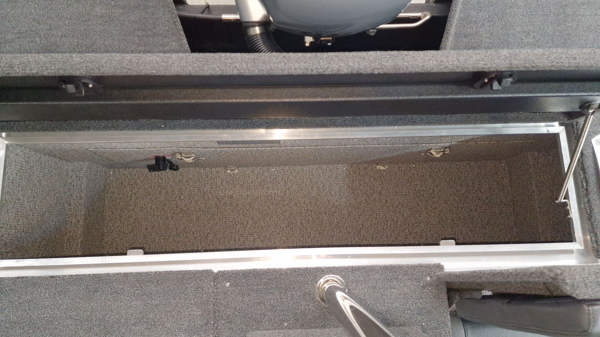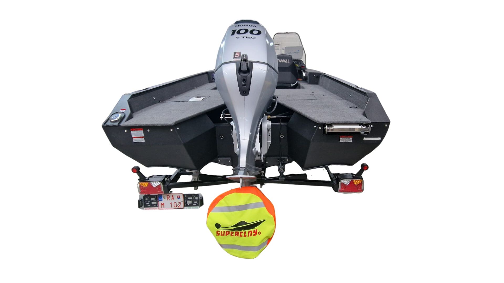 Paluba je potiahnutá kvalitným marine vinylom a kobercovým povrchom, ktorý zabezpečuje komfort aj protišmykové vlastnosti pri rybolove. Praktické úložné boxy umožňujú bezpečné uloženie prútov, nástrah a ďalšieho vybavenia.